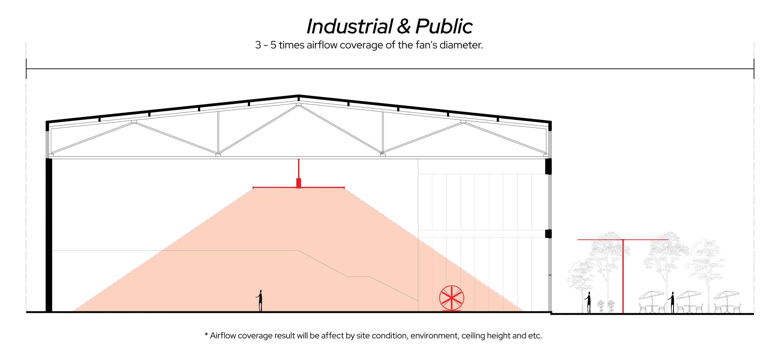 Powered by D/C motor for greater performance with high energy efficiency that silently provides larger and wider cooling natural air coverage with highly durable and elegant design perfect for even larger industrial spaces.